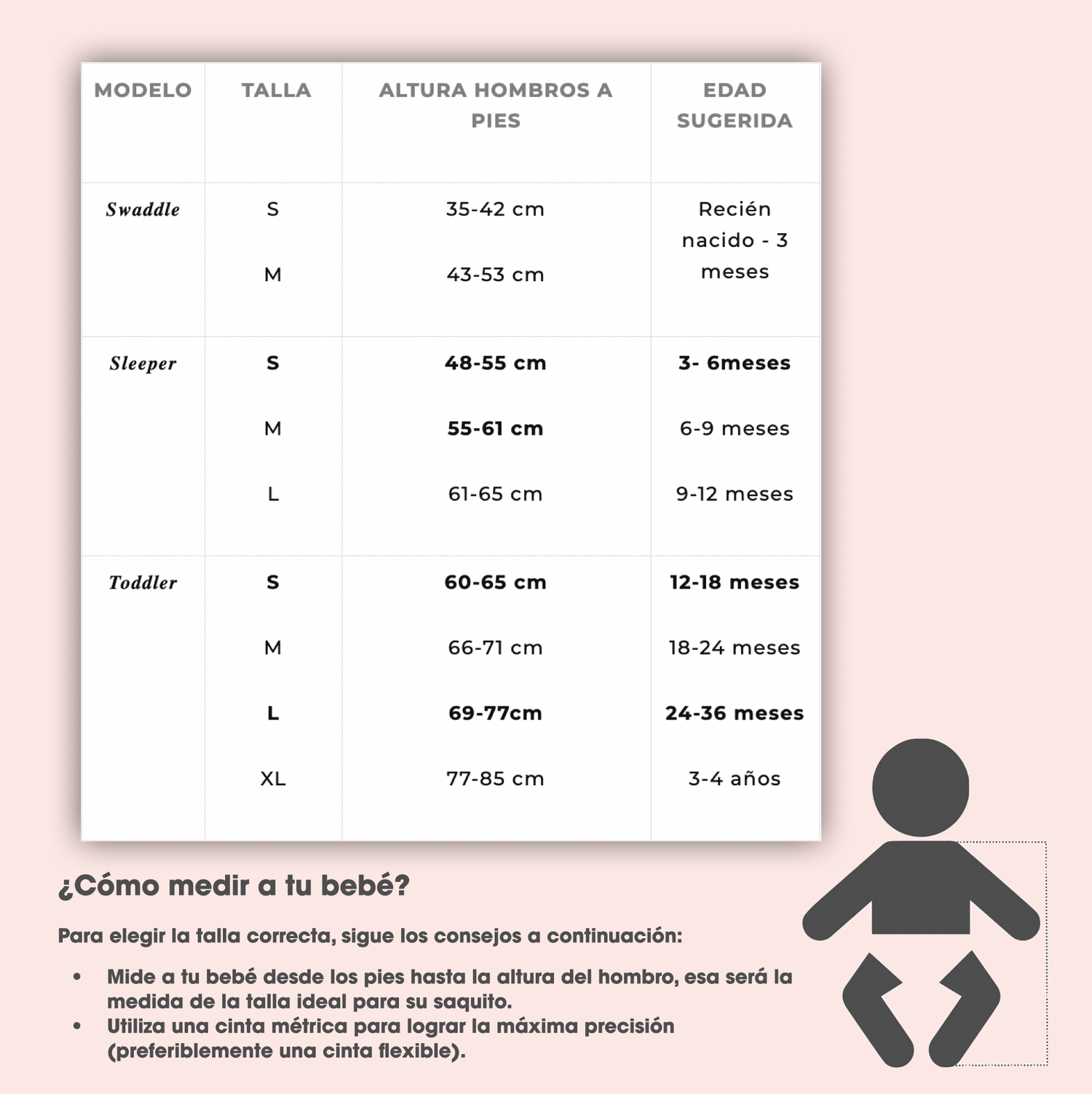 comprarlo. Asegúrate de medir a tu bebé desde los hombros hasta los pies para comprobar la talla ideal de su saquito.